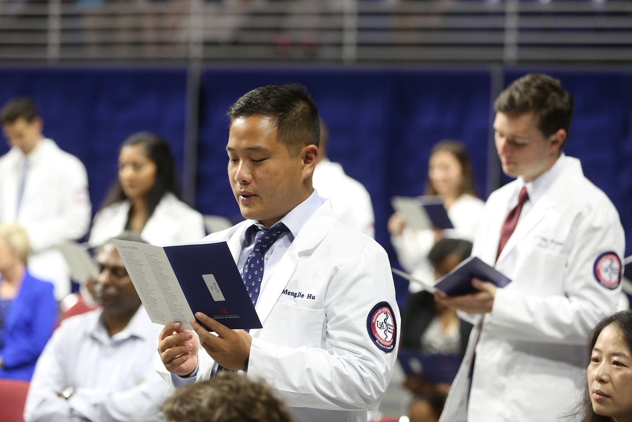 MengJie Hu reads the Medical Student Oath during White Coat Ceremony.