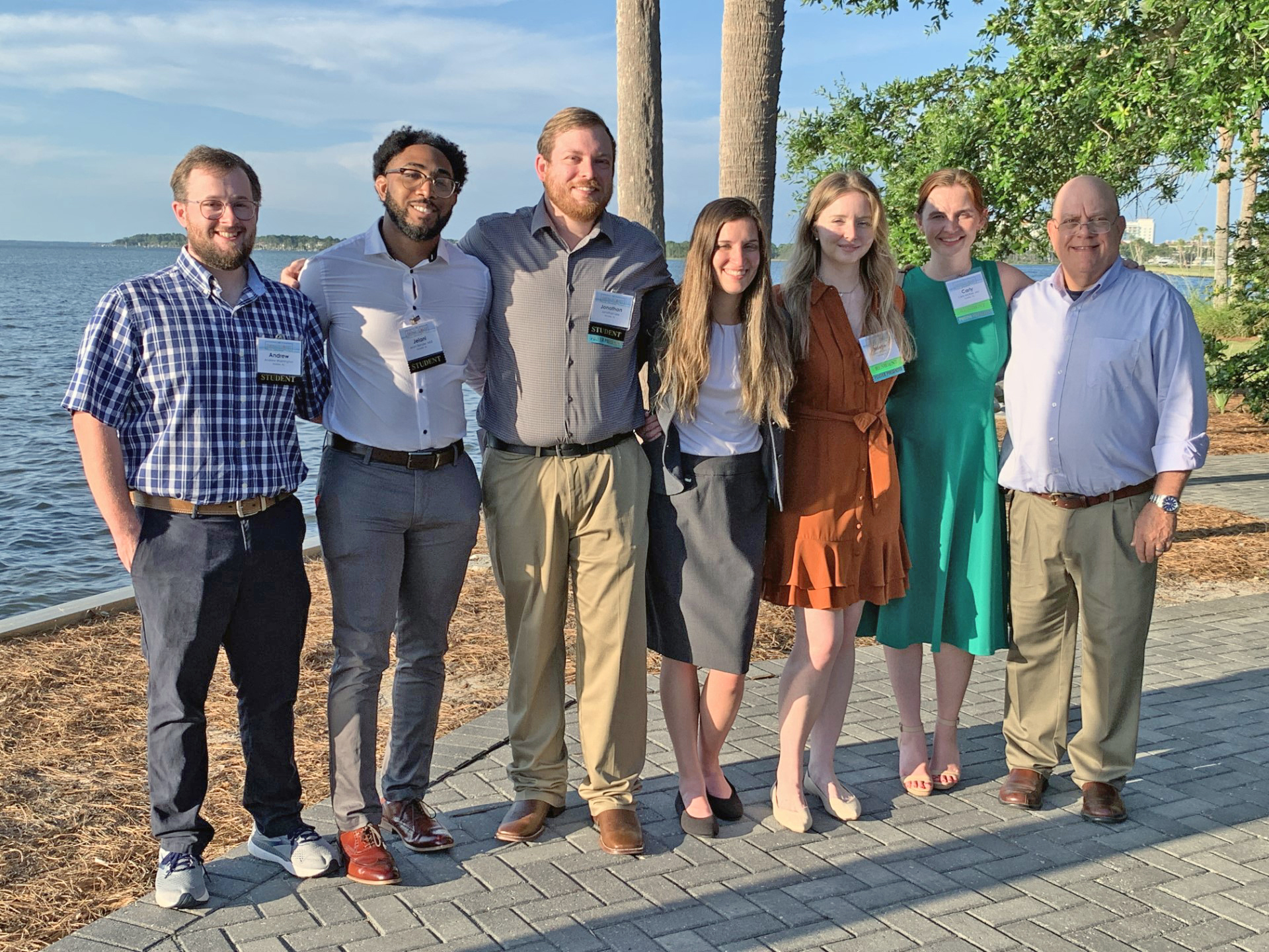 | From left, Andrew Washington; Jelani Bender; Jonathan Lee; Christina Mattingly, M.D.; Noelle Ahmed, M.D.; Carly McRae, M.D.; and Michael Sternberg, M.D., attend the American College of Emergency Physicians’ Emerald Coast Conference. |